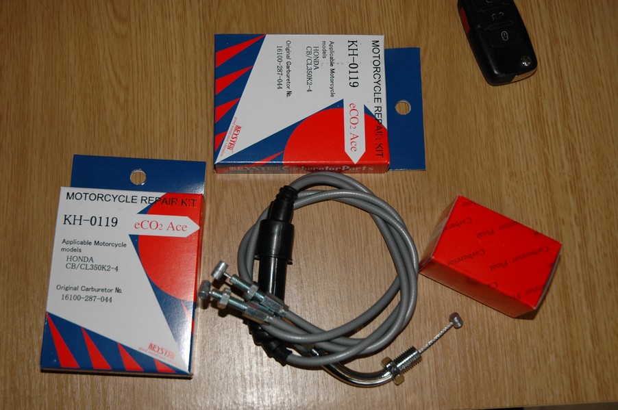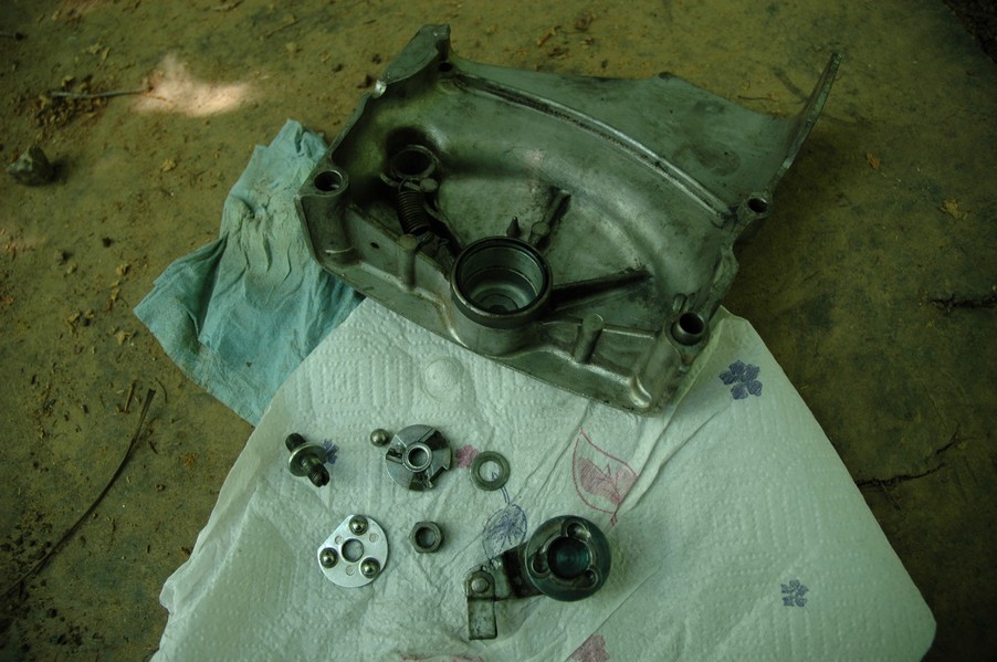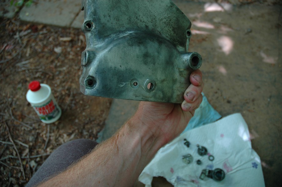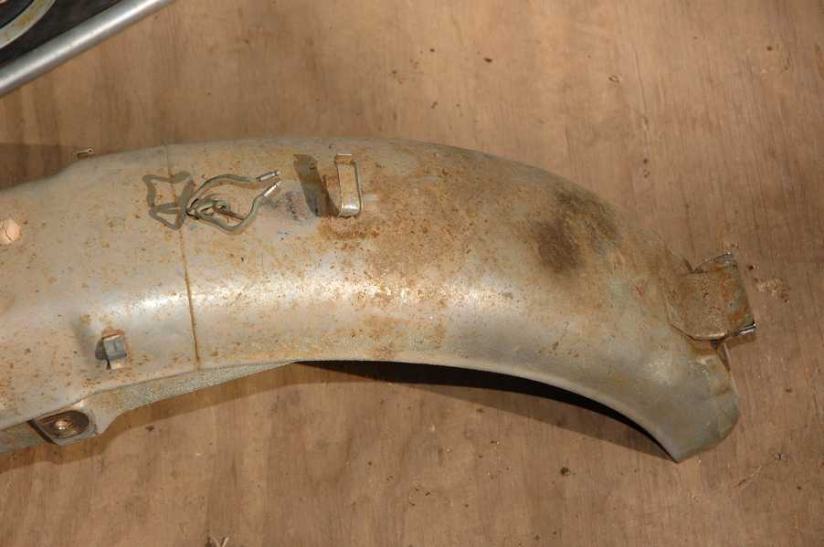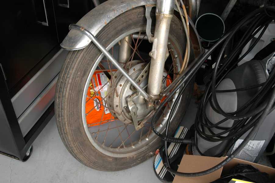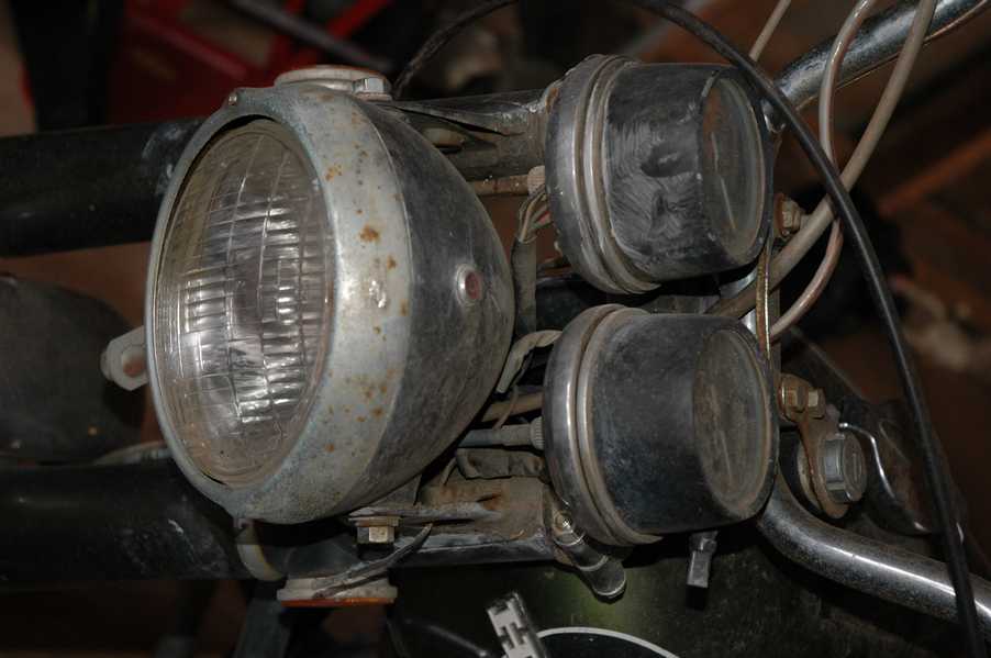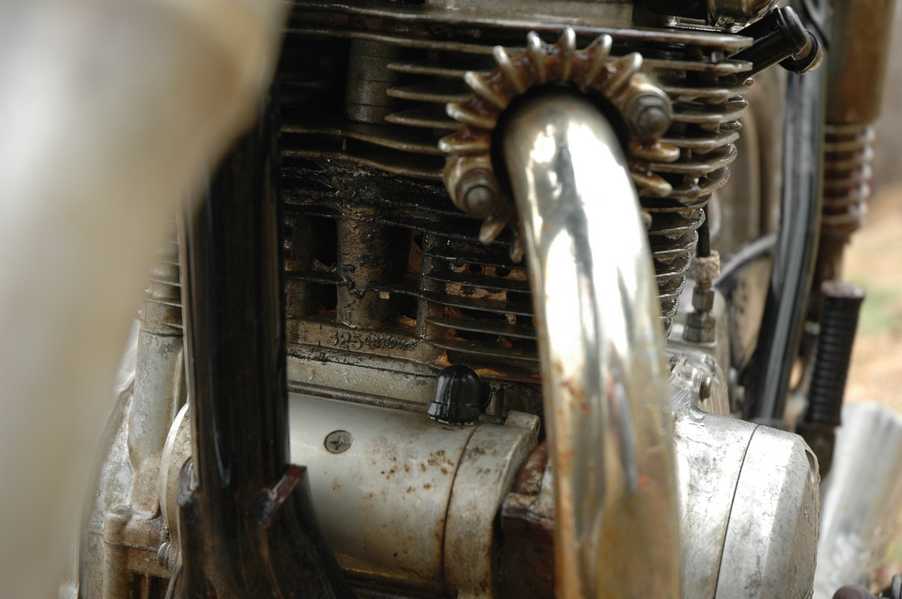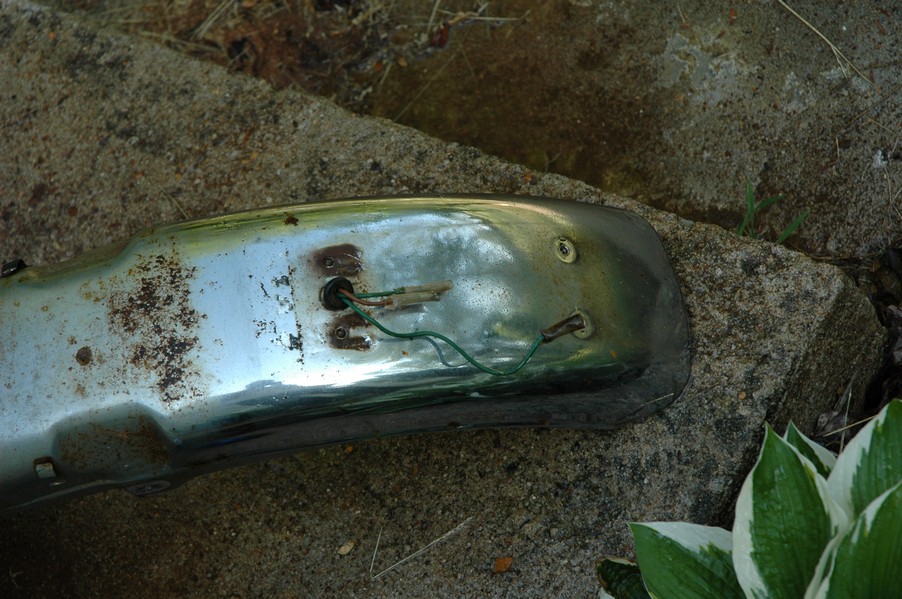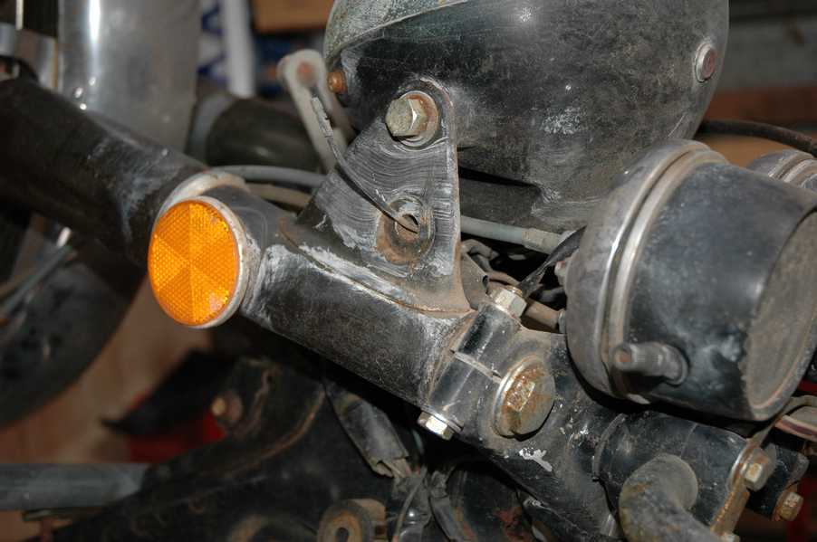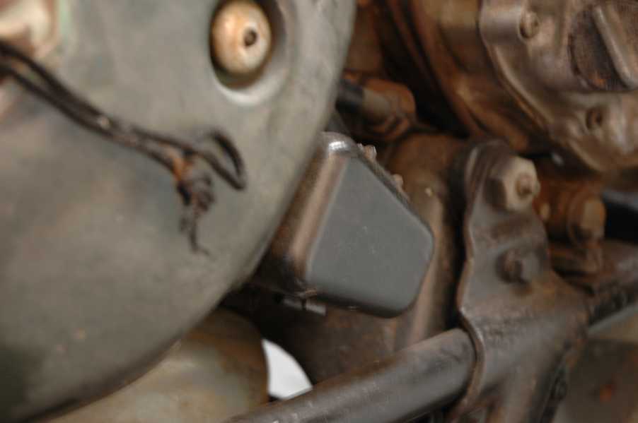 1972 Honda CB350According to honda.com, "Honda dealers sold more than a quarter-million CB350s over the model's five-year run - 67,180 of those in 1972 alone."So here is a 1972, one of the 67180. Thanks to Mark, it's my next project. These are pictures of it that I took when I picked it up. With 23390 miles, this one has seen more riding than the SL175. From what Mark says, I'll be the 3rd owner. This one is more complete than the 175 in some ways, since it does have its original owners manual and toolbox. Since my SL175 has been giving me some trouble, I decided to take a break and work on the CB for a little while. I started by taking off the accessories and giving it a bath. Wow, there was a motorcycle under that faring. In the pictures below you can see that the chrome front fender has some pitting, and of course I've included a picture of the ancient turn signal light bulb. The first owner had trouble with the rectifier, so he put on this aftermarket version. Unfortunately I sheared off the stud when I was taking off the acorn nut that holds on the sissy bar and suspension. I haven't taken it apart further yet to see how complicated the repair is going to be. The aftermarket rectfier looks a little bit recti-fried, so I'm going to try to find an OEM replacement on Ebay. Or is it the voltage regulator? Hmmm... me and lots of other people seem to get the two confused. With the saddle bags off, it is really starting to look like a CB. The sissy bar isn't going to be a part of the restoration, but I have found a luggage rack to put there instead. The seat cover is in rough shape, and so far all that I've found on ebay is a little bit expensive. I've decided to focus on getting it running first, then to worry about the seat cover in phase 2. I guess the battery was a little bit short, so someone put in this 1/4" piece of aluminum and 3/4" pieces of wood to stack it up a little bit higher. Under the owner's manual you can see four Mississippi inspection stickers, ranging from 1974 to 1978. The fuel line had reached it's service life limit some time ago, so it was actually the consistency of uncooked macaroni. If I tried to bend the line it would break off into crispy little pieces. The lever on the petcock is broken off too, which will be something good to fix in the long run. The especially astute reader might have noticed in an earlier picture the tell-tale pool of gasoline varnish on the top cooling fin of the left cylinder. This was actually coming from a leaking fuel tank. It had been repaired before, but the repair doesn't seem to be holding up too well. I'm hoping to use the Kreem products to seal the whole tank, especially since there was quite a bit of rust in the float bowls. Here you can see the original ignition key mounting location, and get a good idea of how dirty the whole frame is. Do you see the pool of varnish yet? Look in the pictures just above. There is a little cricket who is just itching to check it out. Below you can see the wax left on the front end parts, which will hopefully come off fairly easily. The rusted u-bolt is from the crash bar. I guess it wasn't chrome plated like the bar itself was. After all of that work, the bike was ready for a nap. You can see it snoozing and also see how dirty the bottom is. With everything off, you can really start to see some similarity between the CB and the SL175. The fenders are set up differently, and the SL has a double-downtube frame, and of course the exhaust is more like the CB175. The petcock has definitely seen better days. One of the many amenities that the CB has over the SL is the locking seat and helmet hooks. Since they are only accessible from under the locked seat, it gives an option for leaving a helmet in a semi-secure location. The air filters were dirty as I would have imagined, though I suspect they are servicable, which is more than I can say for the powder that I found on the 175. 6-2008 Update- It doesn't appear that it is possible to clean the filters. Replacements are expensive, and hard to find. The side covers have badly oxidized paint on the outside, and I'm hoping that they will look better after some cleaning. There is a rubber balancing tube that goes from one air cleaner to the other. In picture 3 you can see a screw head after removal by drill, and finally the crankcase vent tube (much like all to many other parts) has started reverting to its original ingredients. When I was coasting down the hill from the trailer to the work area, I noticed that the front brake was pretty weak. The back brake was also pretty weak, though mostly because one of the vent tubes was getting in the way of the pedal's travel. In the first picture you can see the squeeze. The last two show a few little wiring problems, though nothing major. Here is more creative wiring, along with a tank strap in pretty poor shape. The good news is that these are being reproduced and are available as new rubber. The rear fender will look a lot better after a rinse and polish, but that's for phase 2. Below in the first picture you can see the worst side of the engine, though I'm not sure where it got exposed to the elements. Maybe the motorcycle was parked under a lean-to, or something like that. The OEM toolkit is in good shape considering the circumstances, though it too could use a bath. The third picture is me trying to give the CB a little motivation by showing how pretty it can be. Hopefully the SL wasn't whispering sweet "engine not runnings" into it's ears. The last photo below is the "before bath" shot. These two are "after the bath" shots, and you can see a large difference. Photo 3 shows the degree of insect infestation in the cooling fins of the engine. The SL had the same problem. The last phot shows where the OEM turn signals will mount, along with the black headlight bucket. It will take some research to see if that is the stock color. The SL uses blue to match the tank and side covers. The last two pictures are espe