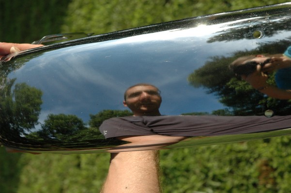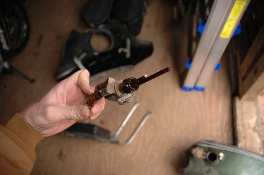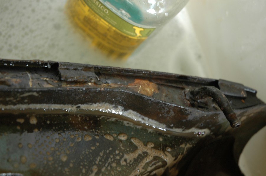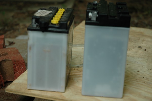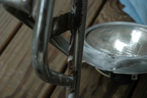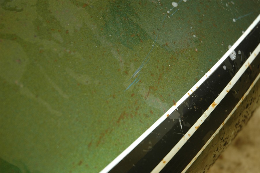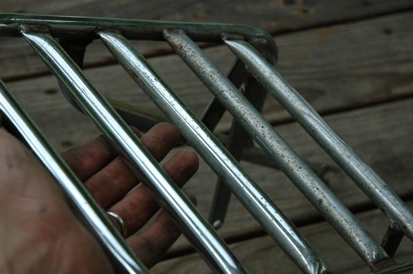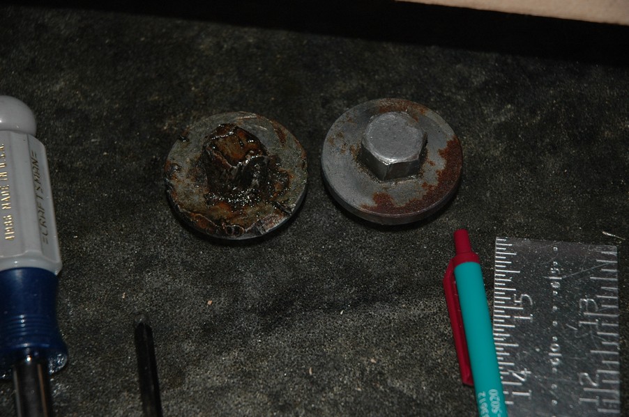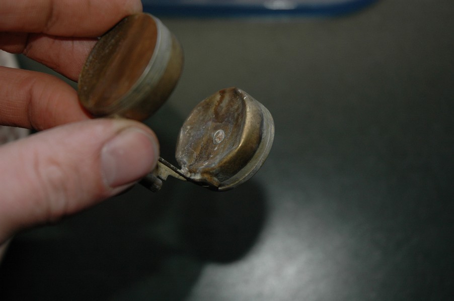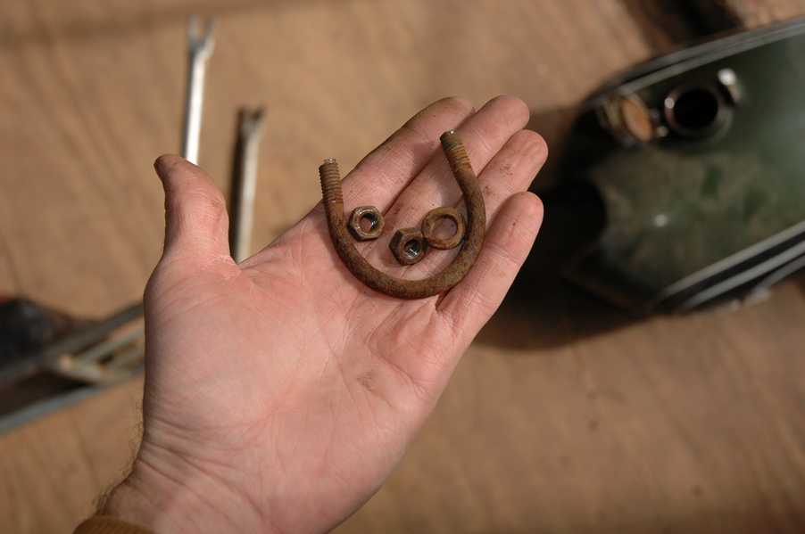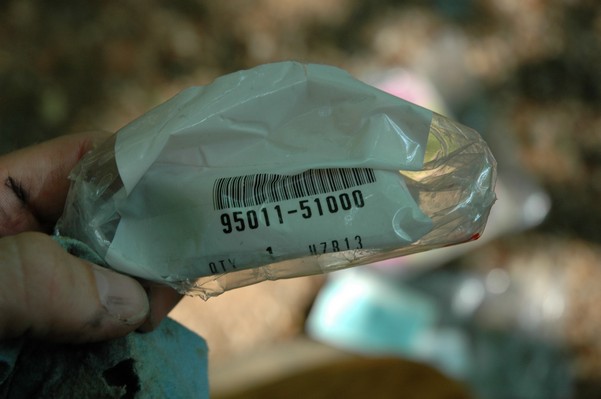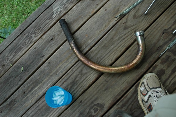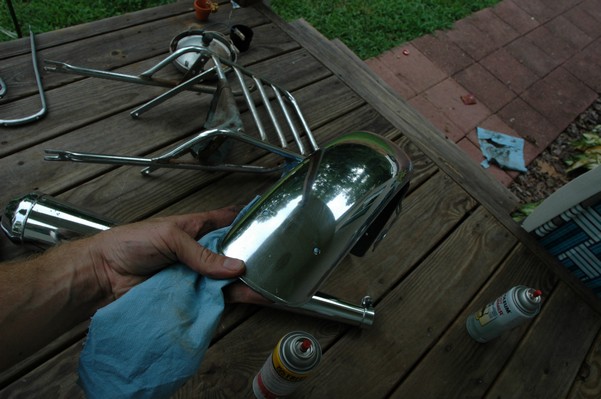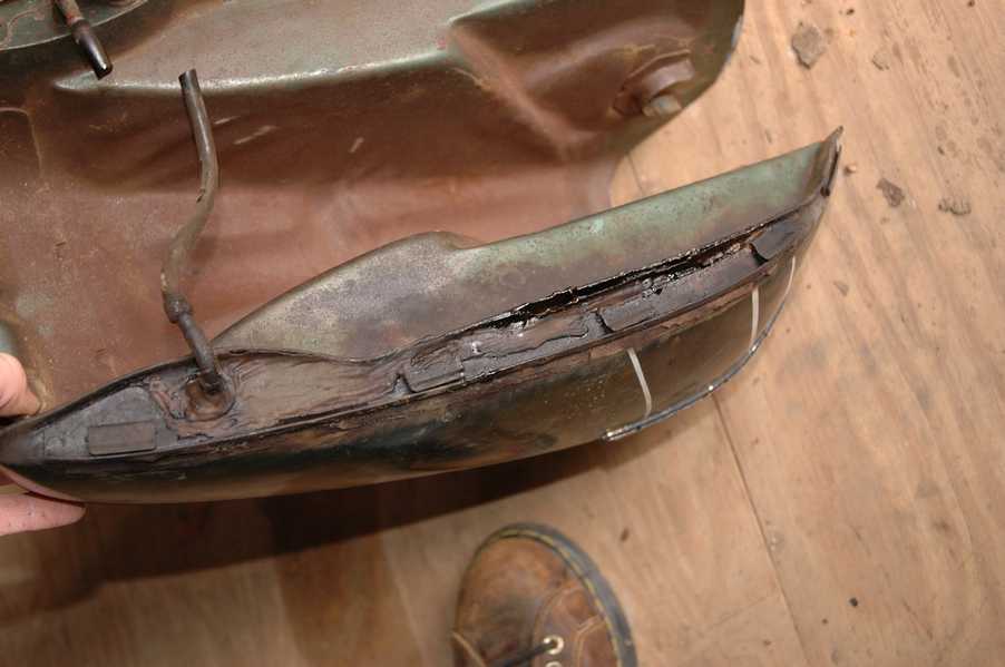 1972 Honda CB350According to honda.com, "Honda dealers sold more than a quarter-million CB350s over the model's five-year run - 67,180 of those in 1972 alone."So here is a 1972, one of the 67180. Thanks to Mark, it's my next project. These are pictures of it that I took when I picked it up. With 23390 miles, this one has seen more riding than the SL175. From what Mark says, I'll be the 3rd owner. This one is more complete than the 175 in some ways, since it does have its original owners manual and toolbox. Since my SL175 has been giving me some trouble, I decided to take a break and work on the CB for a little while. I started by taking off the accessories and giving it a bath. Wow, there was a motorcycle under that faring. In the pictures below you can see that the chrome front fender has some pitting, and of course I've included a picture of the ancient turn signal light bulb. The first owner had trouble with the rectifier, so he put on this aftermarket version. Unfortunately I sheared off the stud when I was taking off the acorn nut that holds on the sissy bar and suspension. I haven't taken it apart further yet to see how complicated the repair is going to be. The aftermarket rectfier looks a little bit recti-fried, so I'm going to try to find an OEM replacement on Ebay. Or is it the voltage regulator? Hmmm... me and lots of other people seem to get the two confused. With the saddle bags off, it is really starting to look like a CB. The sissy bar isn't going to be a part of the restoration, but I have found a luggage rack to put there instead. The seat cover is in rough shape, and so far all that I've found on ebay is a little bit expensive. I've decided to focus on getting it running first, then to worry about the seat cover in phase 2. I guess the battery was a little bit short, so someone put in this 1/4" piece of aluminum and 3/4" pieces of wood to stack it up a little bit higher. Under the owner's manual you can see four Mississippi inspection stickers, ranging from 1974 to 1978. The fuel line had reached it's service life limit some time ago, so it was actually the consistency of uncooked macaroni. If I tried to bend the line it would break off into crispy little pieces. The lever on the petcock is broken off too, which will be something good to fix in the long run. The especially astute reader might have noticed in an earlier picture the tell-tale pool of gasoline varnish on the top cooling fin of the left cylinder. This was actually coming from a leaking fuel tank. It had been repaired before, but the repair doesn't seem to be holding up too well. I'm hoping to use the Kreem products to seal the whole tank, especially since there was quite a bit of rust in the float bowls. Here you can see the original ignition key mounting location, and get a good idea of how dirty the whole frame is. Do you see the pool of varnish yet? Look in the pictures just above. There is a little cricket who is just itching to check it out. Below you can see the wax left on the front end parts, which will hopefully come off fairly easily. The rusted u-bolt is from the crash bar. I guess it wasn't chrome plated like the bar itself was. After all of that work, the bike was ready for a nap. You can see it snoozing and also see how dirty the bottom is. With everything off, you can really start to see some similarity between the CB and the SL175. The fenders are set up differently, and the SL has a double-downtube frame, and of course the exhaust is more like the CB175. The petcock has definitely seen better days. One of the many amenities that the CB has over the SL is the locking seat and helmet hooks. Since they are only accessible from under the locked seat, it gives an option for leaving a helmet in a semi-secure location. The air filters were dirty as I would have imagined, though I suspect they are servicable, which is more than I can say for the powder that I found on the 175. 6-2008 Update- It doesn't appear that it is possible to clean the filters. Replacements are expensive, and hard to find. The side covers have badly oxidized paint on the outside, and I'm hoping that they will look better after some cleaning. There is a rubber balancing tube that goes from one air cleaner to the other. In picture 3 you can see a screw head after removal by drill, and finally the crankcase vent tube (much like all to many other parts) has started reverting to its original ingredients. When I was coasting down the hill from the trailer to the work area, I noticed that the front brake was pretty weak. The back brake was also pretty weak, though mostly because one of the vent tubes was getting in the way of the pedal's travel. In the first picture you can see the squeeze. The last two show a few little wiring problems, though nothing major. Here is more creative wiring, along with a tank strap in pretty poor shape. The good news is that these are being reproduced and are available as new rubber. The rear fender will look a lot better after a rinse and polish, but that's for phase 2. Below in the first picture you can see the worst side of the engine, though I'm not sure where it got exposed to the elements. Maybe the motorcycle was parked under a lean-to, or something like that. The OEM toolkit is in good shape considering the circumstances, though it too could use a bath. The third picture is me trying to give the CB a little motivation by showing how pretty it can be. Hopefully the SL wasn't whispering sweet "engine not runnings" into it's ears. The last photo below is the "before bath" shot. These two are "after the bath" shots, and you can see a large difference. Photo 3 shows the degree of insect infestation in the cooling fins of the engine. The SL had the same problem. The last phot shows where the OEM turn signals will mount, along with the black headlight bucket. It will take some research to see if that is the stock color. The SL uses blue to match the tank and side covers. The last two pictures are espe