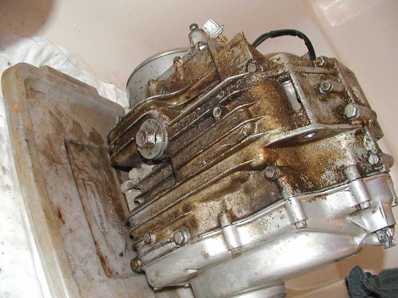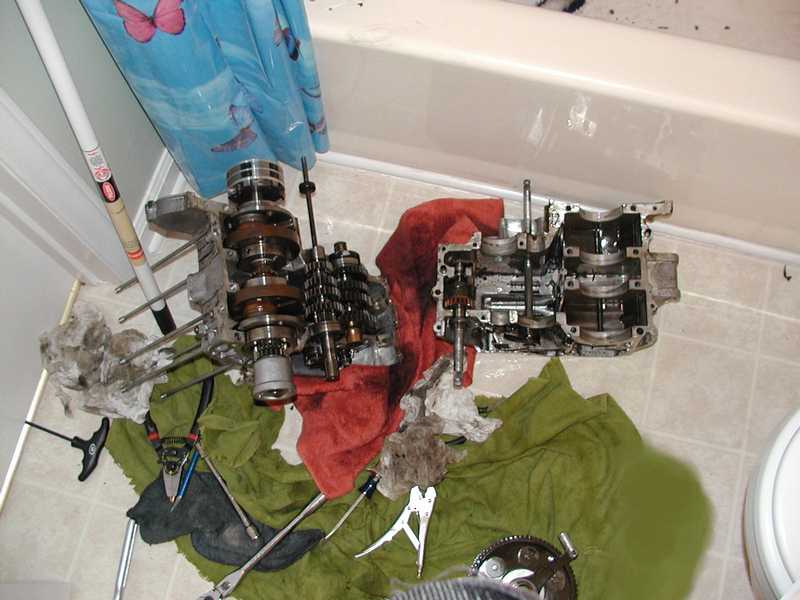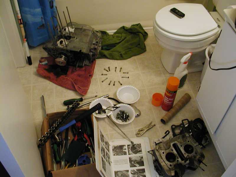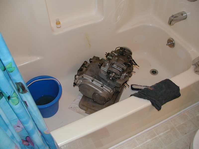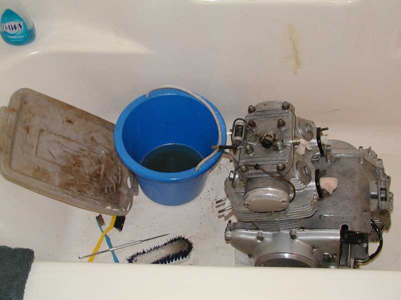 With all of that done, it was up to the bathtub. As the book suggested, I plugged up the intake and exhaust ports and scrubbed the whole thing down with a little bit of degreaser and an old toothbrush.
