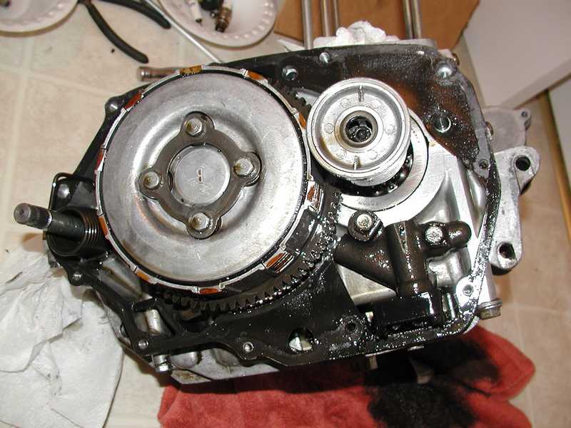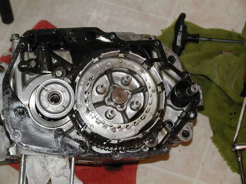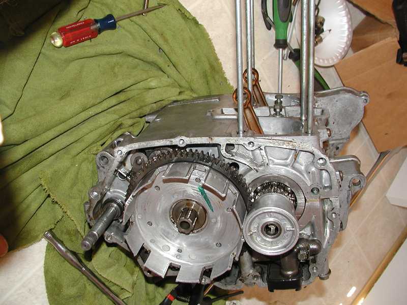 With the clutch plates out, there isn't much left to separating the crank case halves. Just 9 bolts, then 9 more bolts.