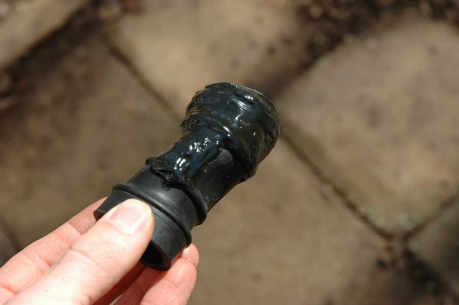 After I put everything back together the idle problem was still the same. I took some pictures of the plugs at various engine speeds, and they seem to look a little bit rich. I tried running the engine on one cylinder with the other spark plug out, and found that the left side is definitely a lot worse off than the right. Since this was the side with the bad rubber tube, I decided to take some time off and repair it more thouroghly. I haven't been able to find one for sale anywhere, and there aren't any reproductions available yet.