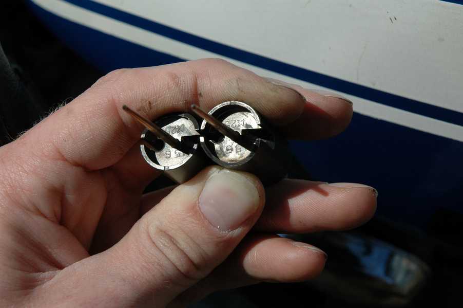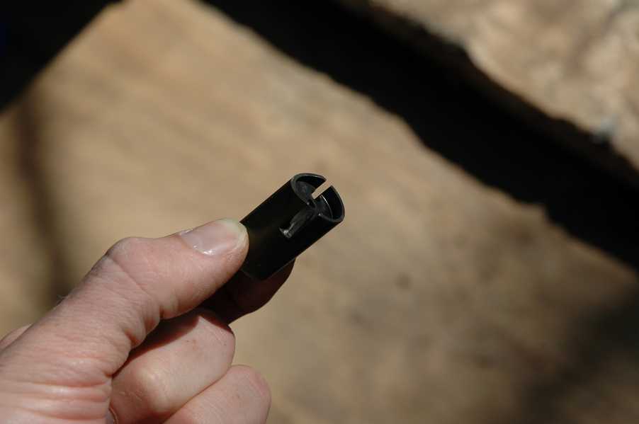 I posted a question on thumpertalk.com to try and get some hints about what could be causing my idle problem. After re-checking all of the popular problems, someone pointed out that the slides could be swapped between the left and right carbs. This was a surprise to me, since I always treated them like they were the same part. It turns out that they aren't, and it also turns out that I had them on the wrong sides. You can see the differences in the pictures below. The first picture shows the angled cut on the bottom of the slide. This angled side faces the inoming air when the slides are in correctly. The second picture shows the two slides beside each other, with the throttle stop slot on the right in both cases. In that configuration one has the angled cut on the top of the picture, while the other one is on the bottom in the picture. The last picture shows that they have different numbers stamped on the bottom- 155 and 156.