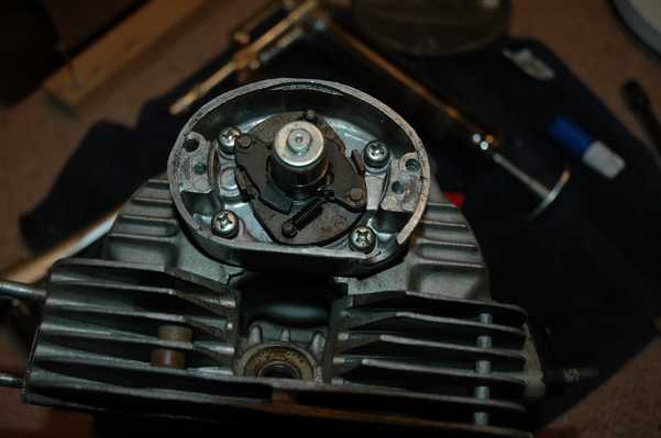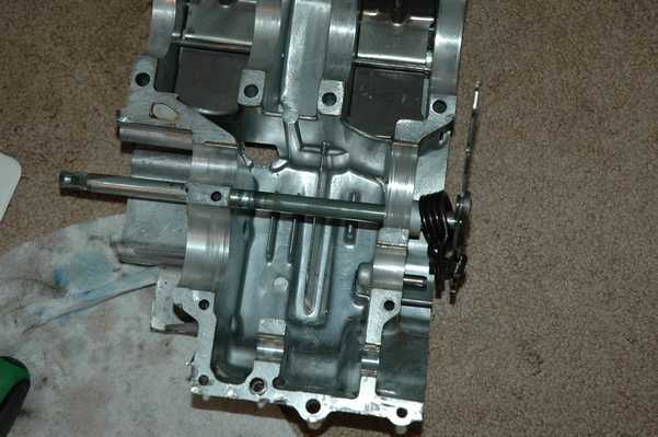 At any rate, look at the second and third pictures below to see the two different shafts in place. Since parts were not available for the SL shaft, I decided to try and use the CL shaft that I already had on hand. They both engage the same gear in the same place, they just have a different way of releasing once the engine starts. They looked like a close enough match to me, so I put in the CL shaft. Now that I have everything back together, I have to say that I can't tell any difference between the two. On a related note, my CL shaft was fairly worn where it meets the kick start lever, so I had to go through a different process to keep it from slipping outside the engine. More on that later.