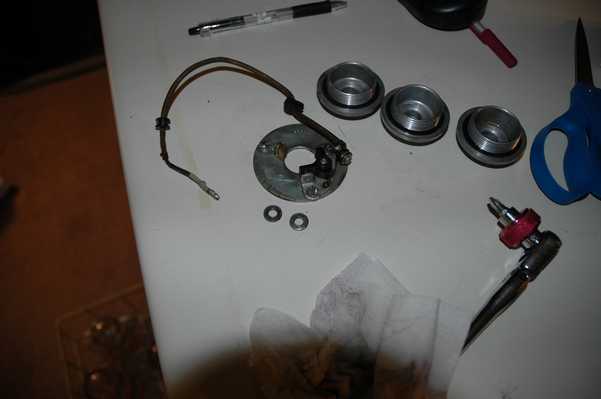 As for the second part, I'll have to say well, sort of. At first the engine didn't really idle well or run well at high speed. I wanted to replace the original carb gaskets, since they were seeping fuel. I found a pair of carb kits on ebay, and while I was cleaning the carbs in preparation for re-installation, I went ahead and replaced the jets and needles from the kits. When it didn't run right, my first reaction was to take out the new jets and needles and put the old stuff back in. When I took off the left float bowl and gave the remaining fuel a toss, I heard a little clinking noise that turned out to be the main jet saying goodbye as it went sailing across the driveway. It turns out that it had unscrewed itself and fallen into the bowl, leaving the high speed circuit free to suck as much fuel as it could at high engine speeds. Given the circumstances, it wasn't really running that bad at all. Once I put the old needles and old jets back in the high end cleaned up and started running perfectly. This was quite a relief, since one of may main reasons for all of that engine work was to improve the weak compression on the right cylinder. But, the idle was still not right.