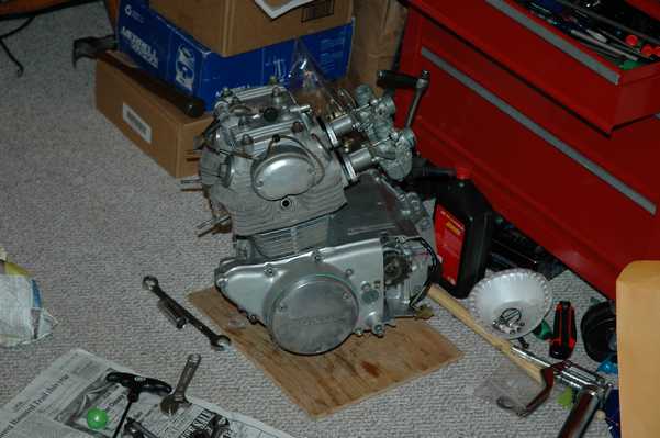 April 2008 Update: I did not replace the camchain during this step, and that was a mistake. You can read about that in subsequent parts of the story.